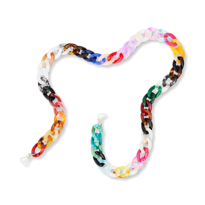 Keep track of your glasses and upgrade your outfit with our chunky glasses chain. This chic chain features adjustable silicone closures to fit any pair of glasses. They come in Nude and Multicoloured.