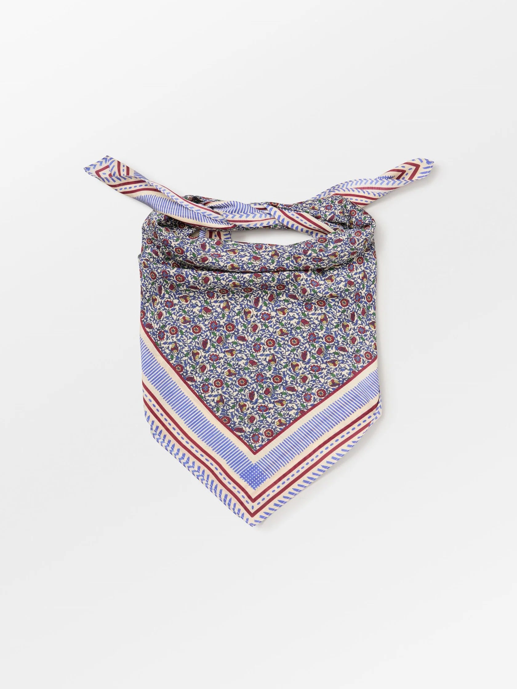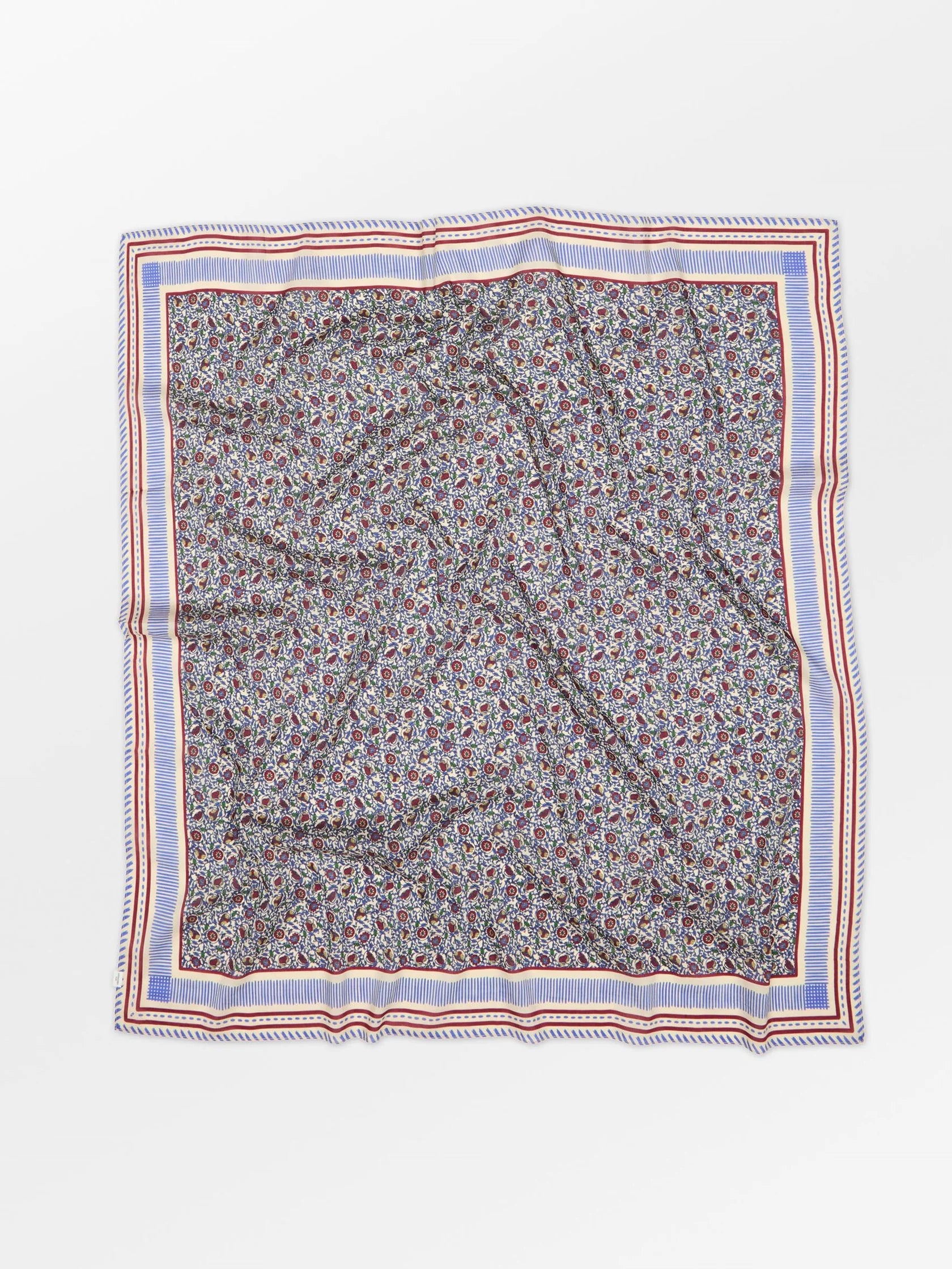 Asflora Sico Scarf from Becksöndergaard is a square scarf measuring 100 x 100 cm, made from 80% cotton and 20% silk. The small floral pattern creates a light and feminine look. The soft quality feels comfortable against the skin and works well for both everyday wear and special occasions.