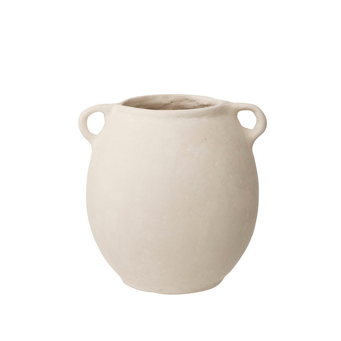 Stylish white vase for artificial or dried flowers. This vase is handcrafted from recycled newspaper, chalk, and glue, giving it a matte and charming finish. Please note that the vase is intended for decoration only and is not water-resistant.