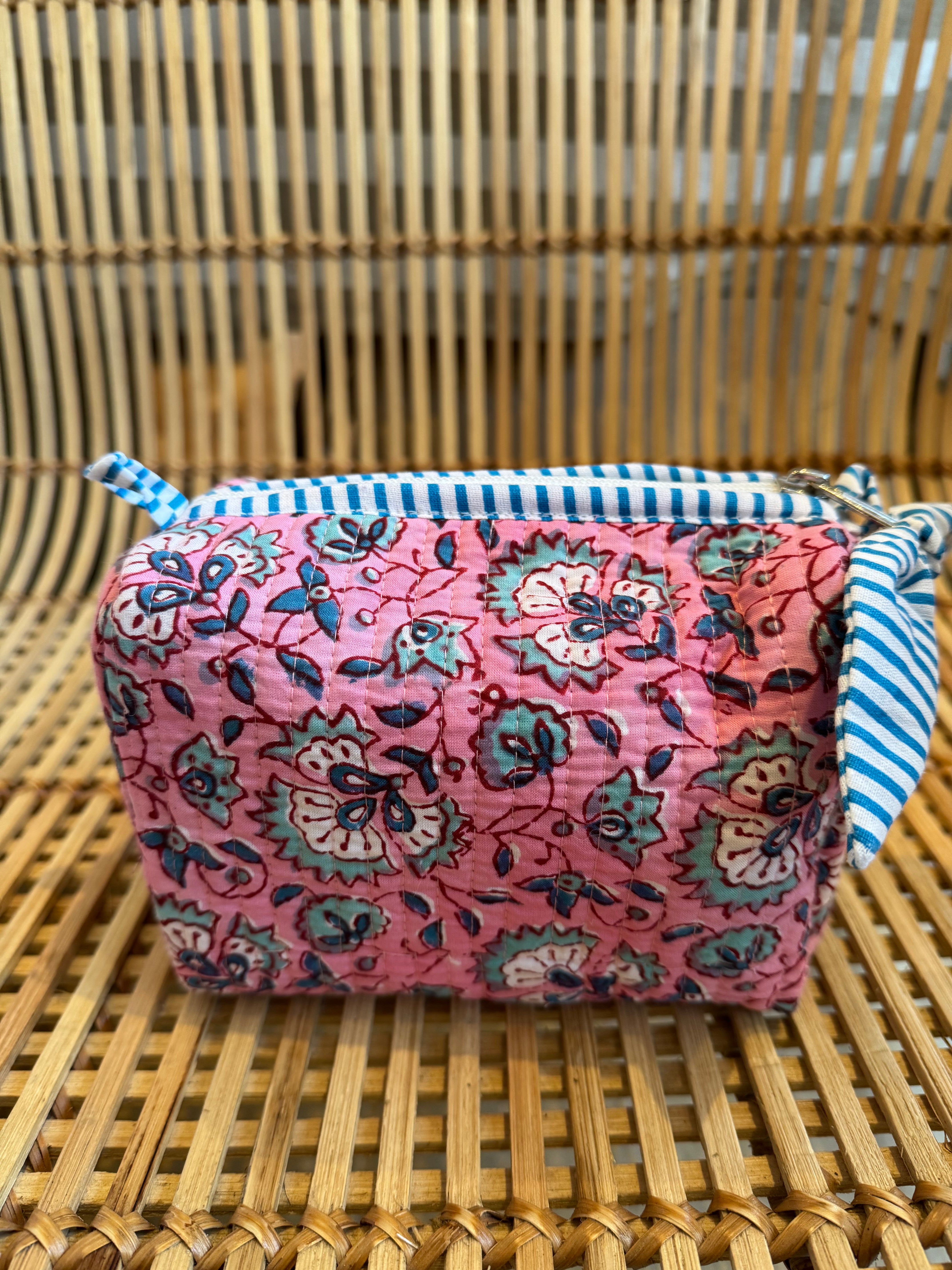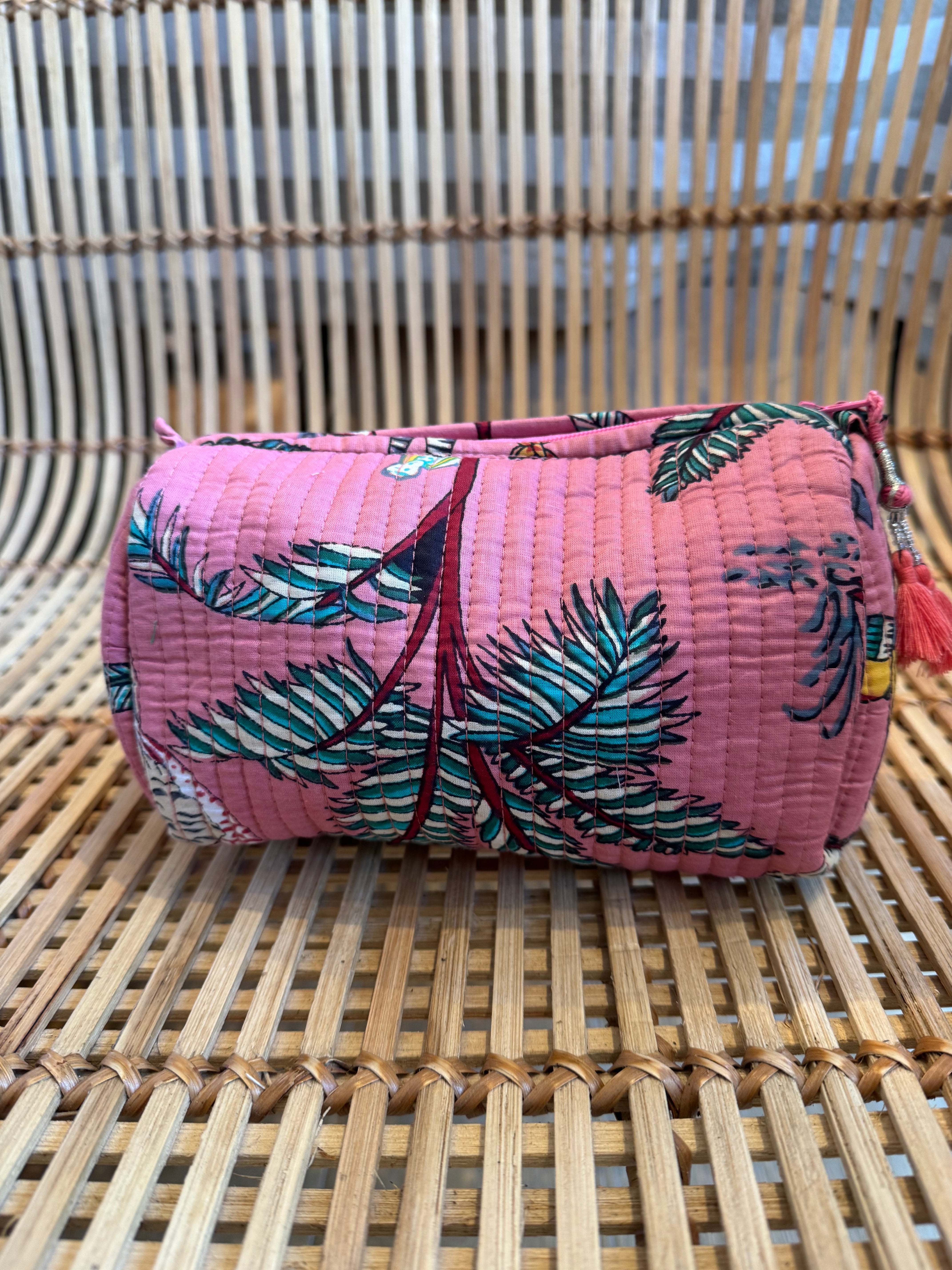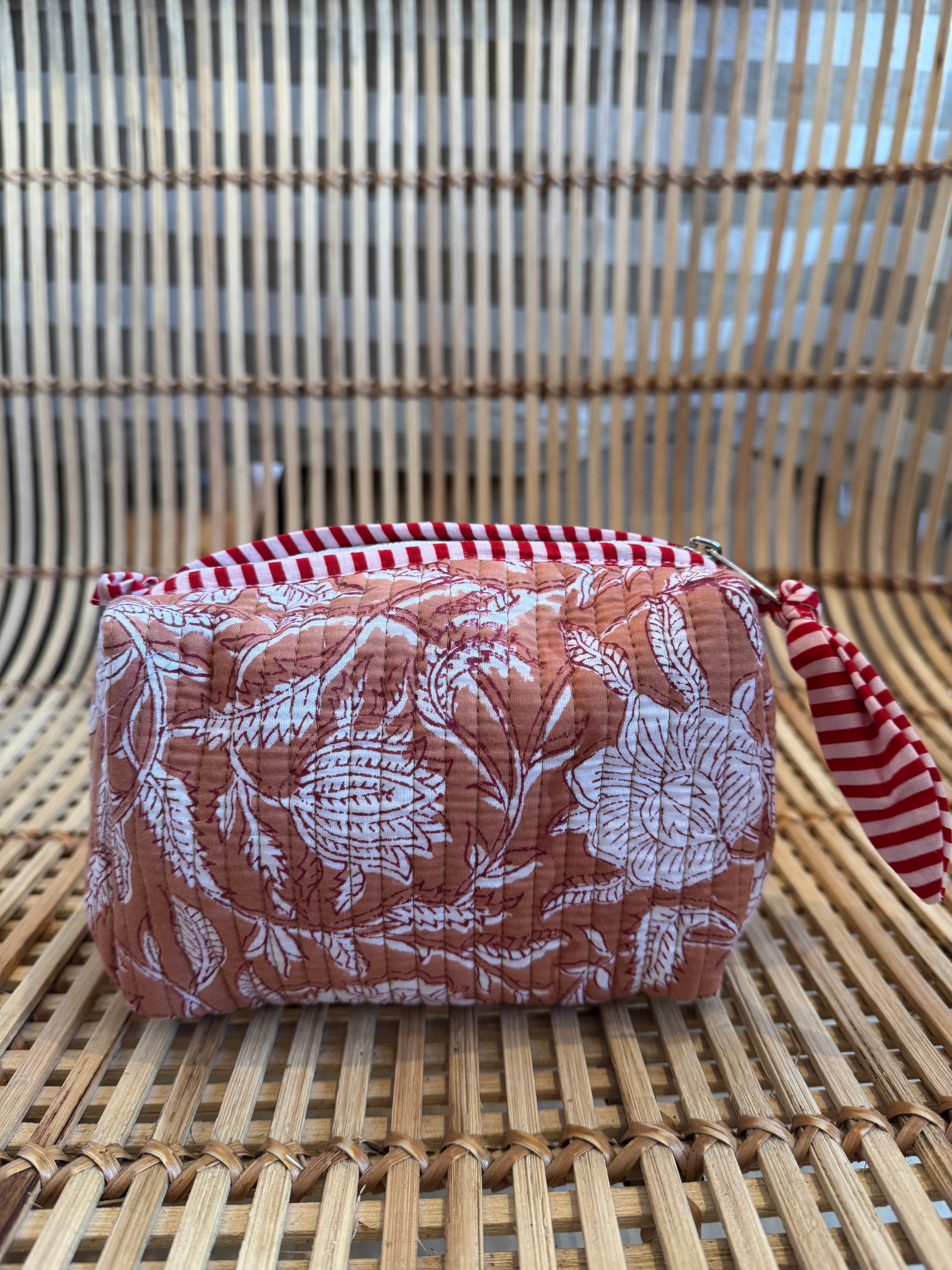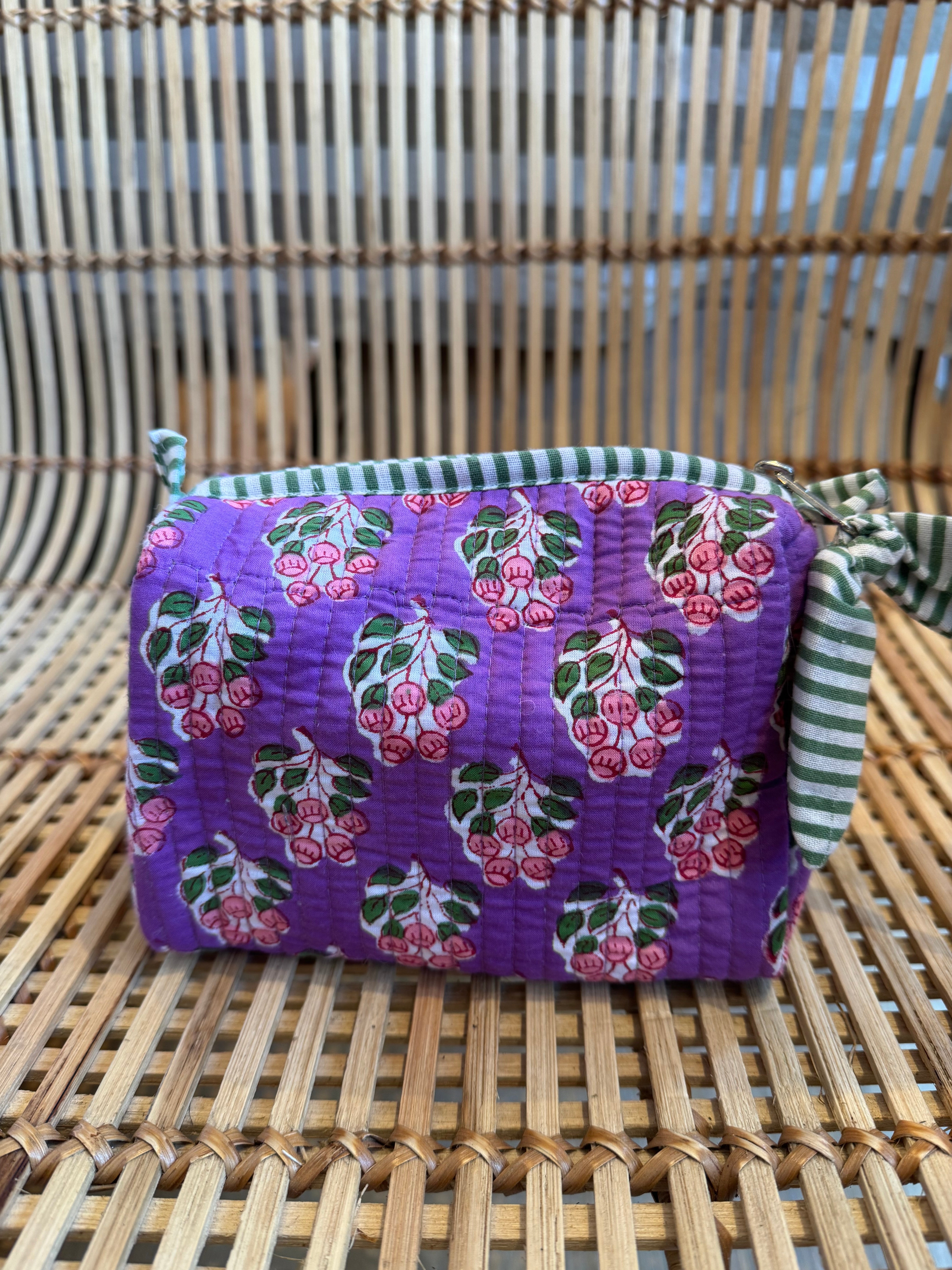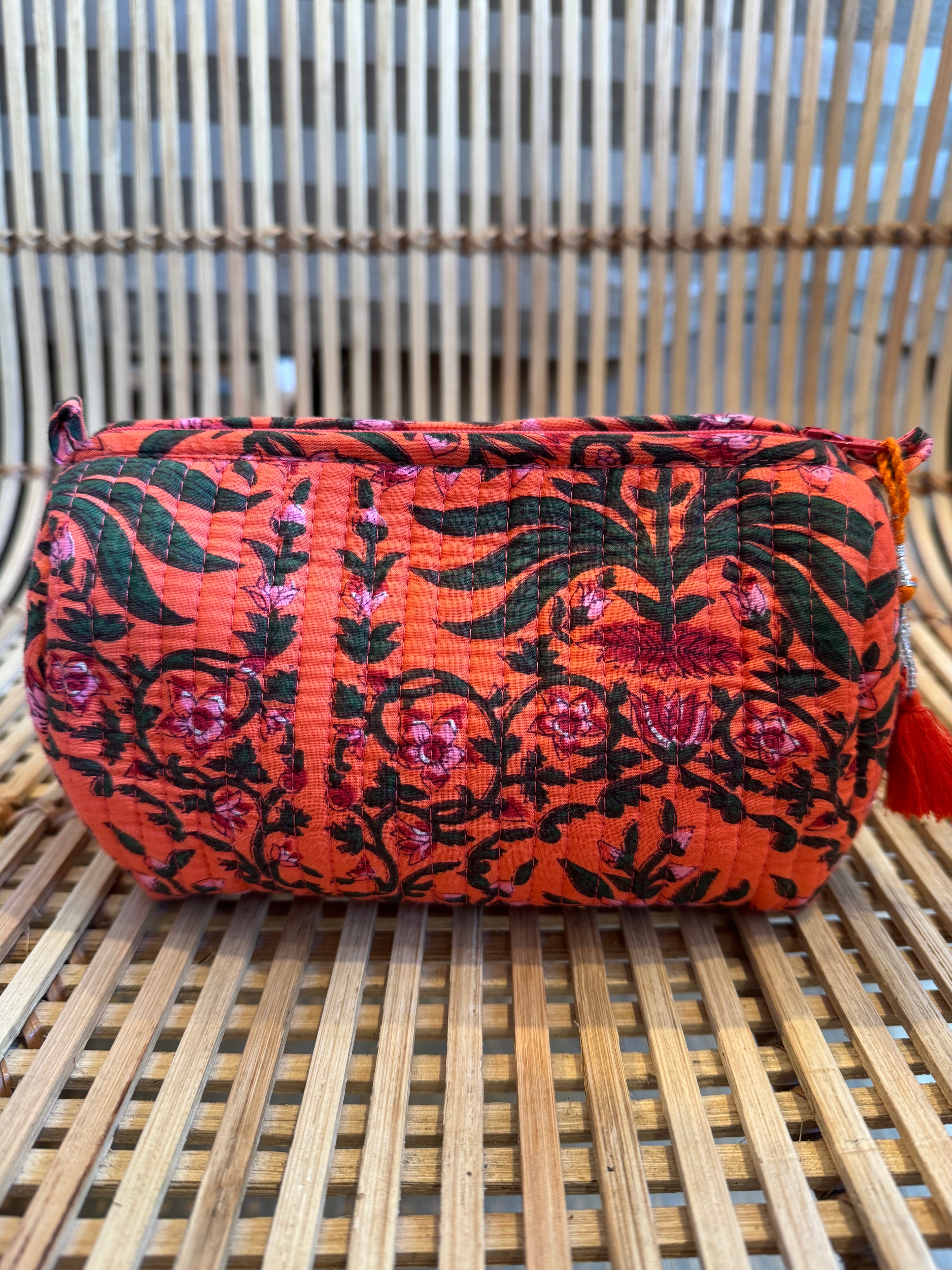 These stylish, hand block printed quilted cotton wash bags are perfect for make-up and make a wonderful gift plus they come in many different colourways so which one will you choose?